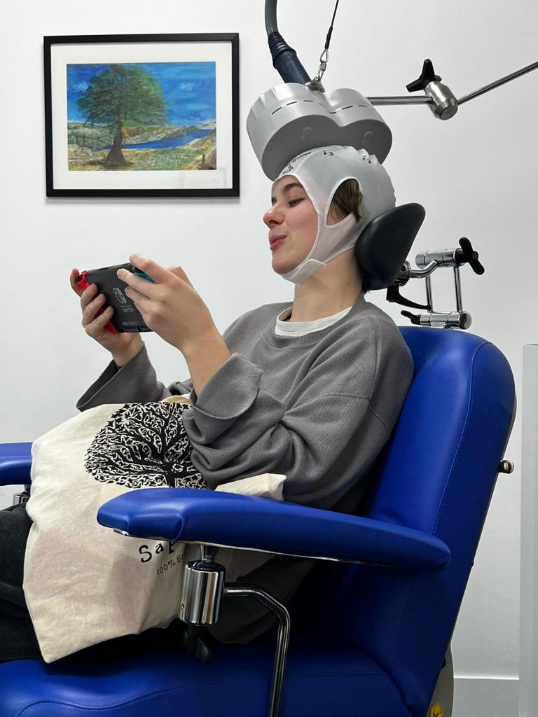 Anxiety sits in the right side of your brain and depression sits in the left. RTMS was specifically targeting my right side. When I sat down in the chair, I was positioned so I was comfortable whilst the machine moved closer to my head. The machine targets an area the size of a 50p coin and penetrates 2cm deep. Don’t worry there is no invasion, it’s purely an electromagnetic wave. They counted me down before I began the first treatment and assured me I could stop any time.